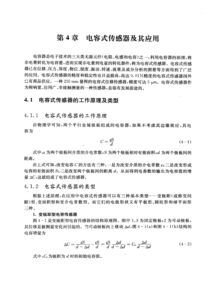 文摘: 4.1.2電容式傳感器的類型 根據上述原理,在應用中電容式傳感器可以有三種基本類型——變極距 1.變極距型電容傳感器 圖4-1是變極距型電容傳感器的結構原理圖。圖中1、3為固定極板;2為可動 |
