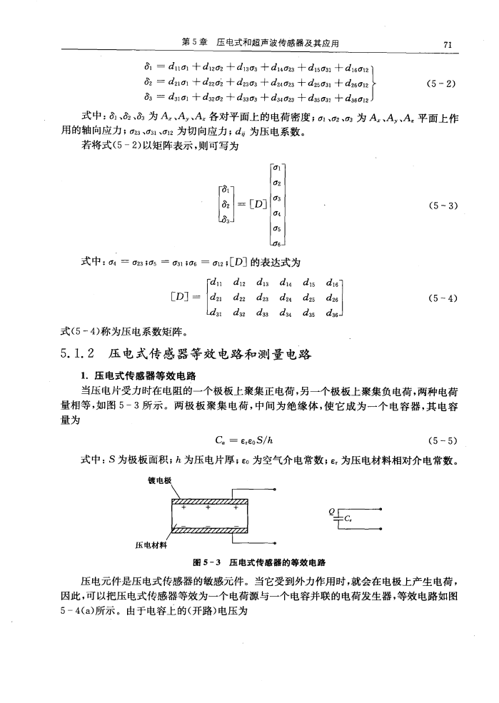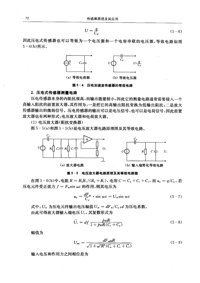 壓電式傳感器等效電路和測量電路
