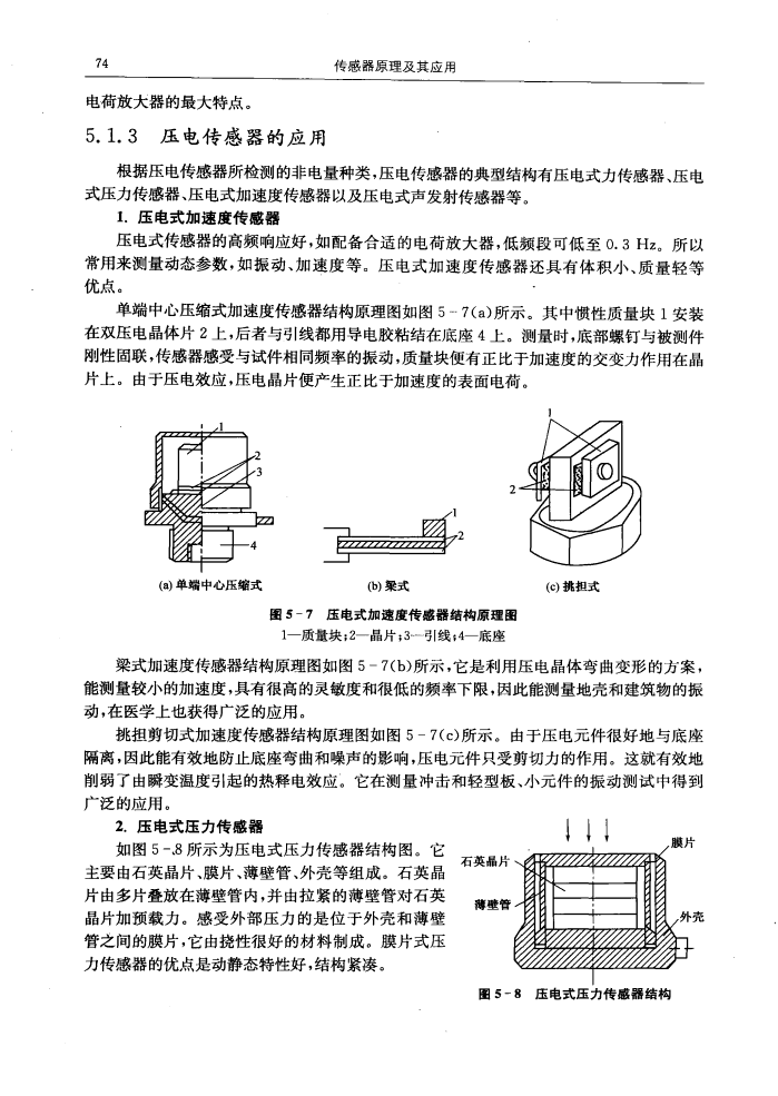 文摘: 5.1.3壓電傳感器的應用 根據壓電傳感器所檢測的非電量種類,壓電傳感器的典型結構有壓 1.壓電式加速度傳感器 壓電式傳感器的高頻響應好,如配備合適的電荷放大器,低頻段可低至 單端中心壓縮式加速度傳感器結構原理圖如圖5 - 7(a)所示。艿中慣性 |