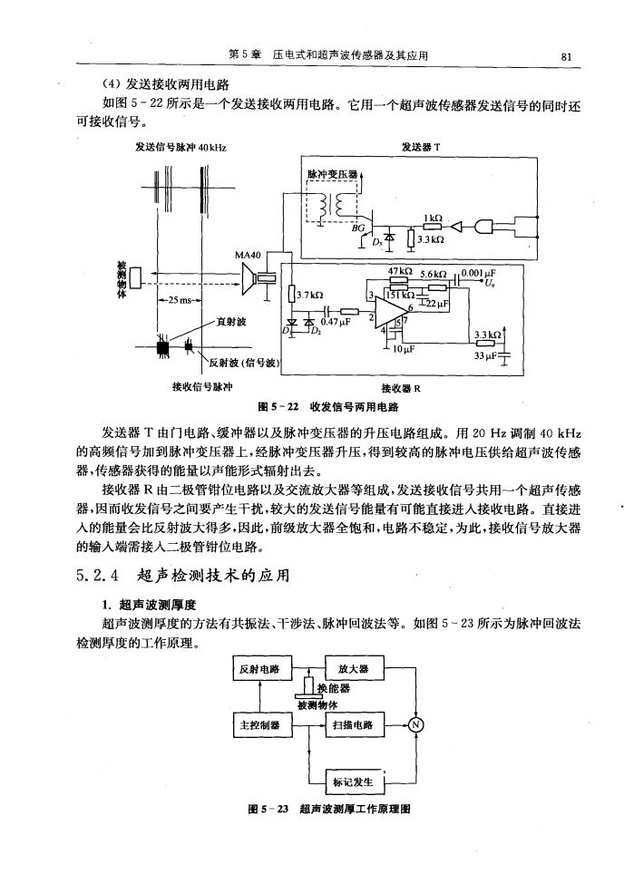 文摘: 1、超聲波傳感器驅(qū)動(dòng)電路 發(fā)送傳感器的驅(qū)動(dòng)方式有自勵(lì)式振蕩和他勵(lì)式振蕩兩種。 (1) 自動(dòng)式振蕩驅(qū)動(dòng)電路 自勵(lì)式振獲電路與晶體振蕩一樣。它是利用傳感器本身的諧 (2) 他勵(lì)式振蕩驅(qū)動(dòng)電路 圖5 - 18是采用NE555定時(shí)器的他勵(lì)式振蕩電路,這種振蕩電路 |