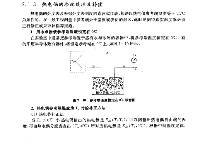 文摘: 熱電偶的冷端處理及補償 熱電偶的分度表及根據分度表刻度的直讀式儀表,都是以熱電偶參考端溫 1.用冰點器使參考端溫度恒定在0攝氏度 在實驗室中通常把參考端罝于盛有水與冰屑的容器中,將參考端溫度恒定 |