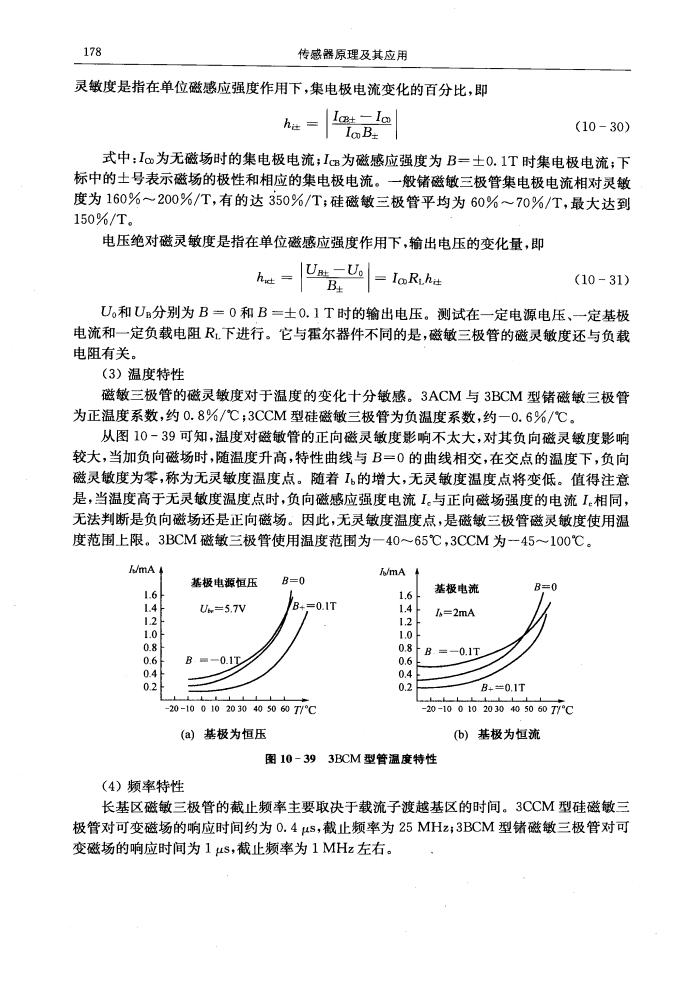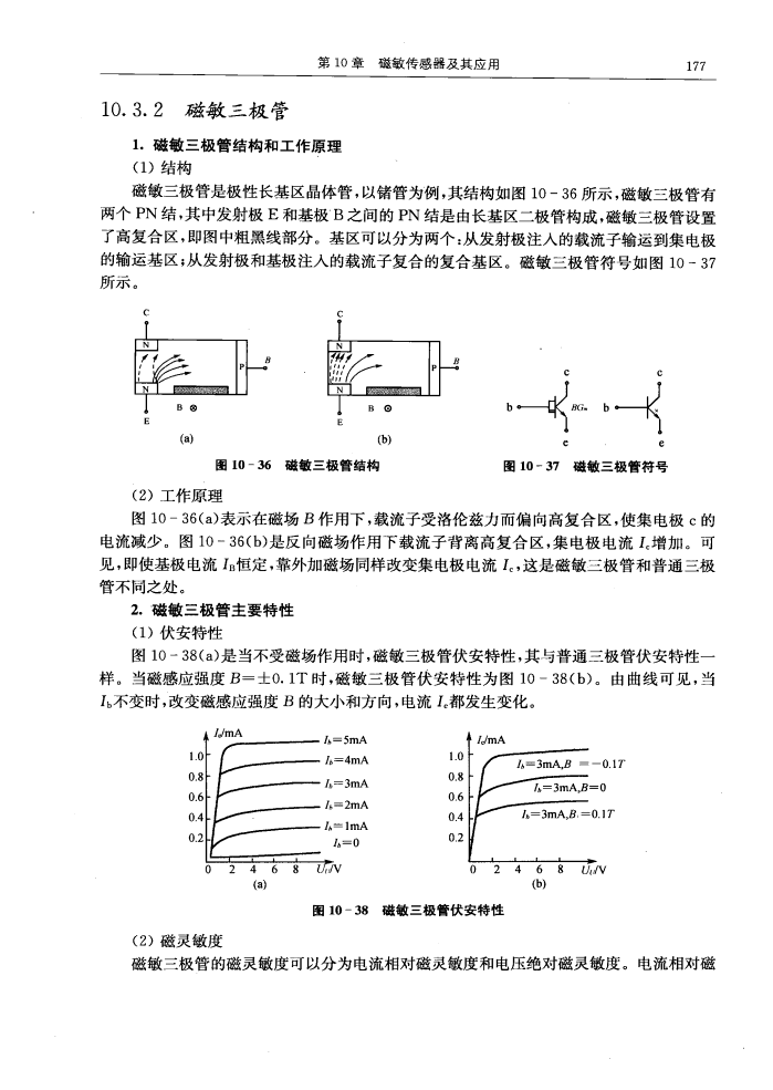 | 文摘: (1)結(jié)構(gòu) 磁敏三極管是極性長(zhǎng)基區(qū)晶體管,以鍺管為例,其結(jié)構(gòu)如圖10-36 |