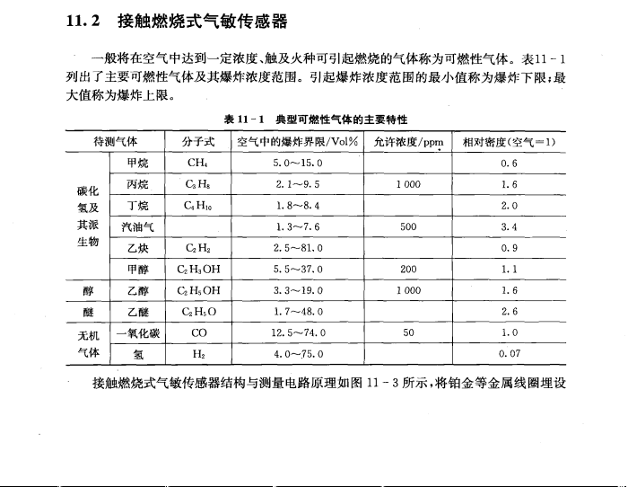 可燃性氣體。表11 -1 列出了主要可燃性氣體及其爆炸濃度范圍。