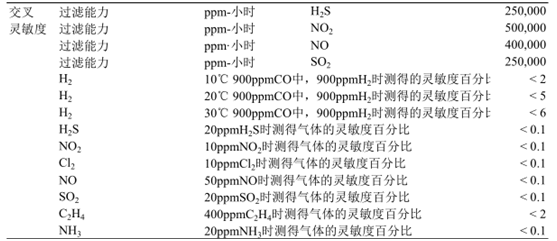 b. CO-CX傳感器干擾氣體交叉干擾靈敏度
