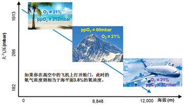眾所周知,從海平面到萬米的高空,氧氣在空氣中的含量均為21%左右,但是氧分壓卻有很大的不同。