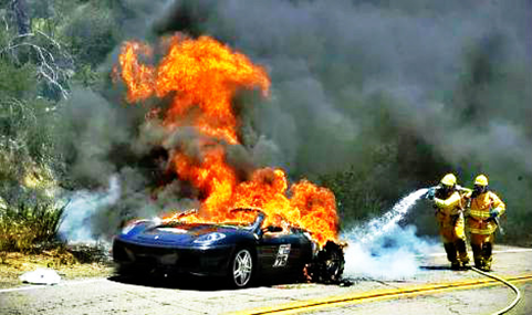 當車內或底盤開始噴出明火時,說明電動汽車的動力電池已經完全失控,故障的電池已經將火勢波及到其它正常單體,已經起火電池開始引燃周圍其它電池,導致火勢越來越猛烈,高溫迅速將正常的電池破壞,電池內的易燃物劇烈燃燒并向外噴出火焰。在電池已經出現明火的情況下,個人或專業消防已經無法控制局面,由于火源在電池包內部,幾乎沒有辦法可以控制火勢,消防部門對于電動汽車起火的慣用做法是任其燃燒,同時建立隔離區防止火勢蔓延到周圍環境和車輛。