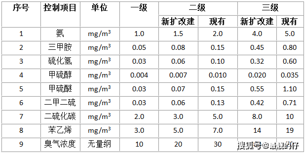 如氨濃度為1 ppm定為2.5級,2ppm定為3級,5ppm定為3.5級。各種臭氣的臭氣等級超過2.5一3.5級,即認為大氣受到臭氣污染,需采取防治措施。