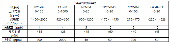 B4系列除了針對氮氧化物的監測,也提供了其他的幾種常見的大氣中有毒氣體的監測: