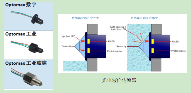 光電液位傳感器是根據(jù)光線在兩種介質(zhì)的反射情況判斷此位置是有液體還是沒有液體的,兩種介質(zhì)分別是空氣和液體。傳感器頭部暴露在空氣中時屬于無水狀態(tài),光線直接反射回傳感器的接收器;液體浸到傳感器頭部時屬于有水狀態(tài),光線會折射在液體,只有少量或沒有光線反射回接收器。傳感器根據(jù)這兩種狀態(tài)判斷輸出不同的電平信號。根據(jù)光電液位特性,安裝在箱體某個刻度,若防凍液過少時,發(fā)出警報。提醒車主及時保養(yǎng)