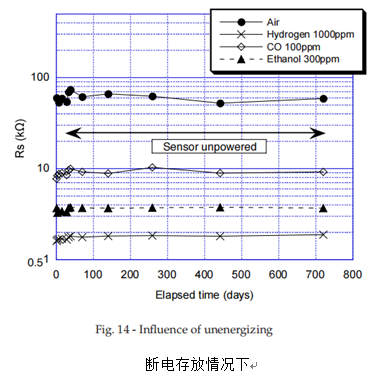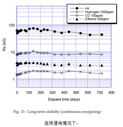 接下來我們再看看傳感器的長期穩定性,畢竟性能不穩定波動太大的話會導致傳感器誤報延報的,會嚴重危及人民的生命財產安全。而費加羅的研發生產的TGS2620上市時間足夠長,經受住了市場的考驗。長期穩定性可以參考下圖。可以看得到TGS2620的性能十分穩定。