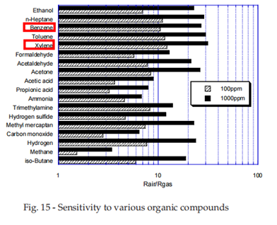 然后我們再來看看TGS2620-C00對不同有機化合物的敏感性。