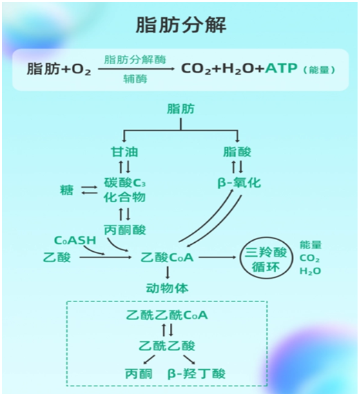 減肥的目的主要是減脂,通過運動燃燒消耗體內過量的脂肪。“脂肪燃燒”對于減肥來說尤為重要,這是因為,當體內可用葡萄糖殆盡時,就會通過燃燒體內脂肪來產生能量,也就是生成一種被稱之為能量源的“酮體”。可以這么認為,減肥就是要達成燃燒體內脂肪生成“酮體”,并將其作為能量源利用起來的狀態。