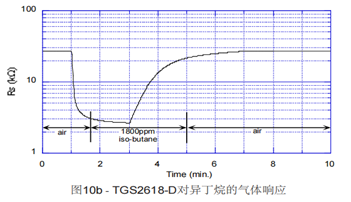 2、TGS2618-D00對可燃?xì)怏w響應(yīng)迅速(GB 15322.2-2019 對T90響應(yīng)時(shí)間的要求是30秒內(nèi))