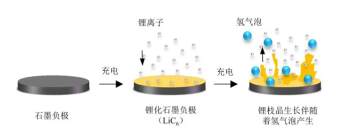 其中,氫氣擴散速度最快,下圖展示的分別是氫氣產生過程與鋰枝晶和聚偏氟乙烯黏結劑的化學反應機理。