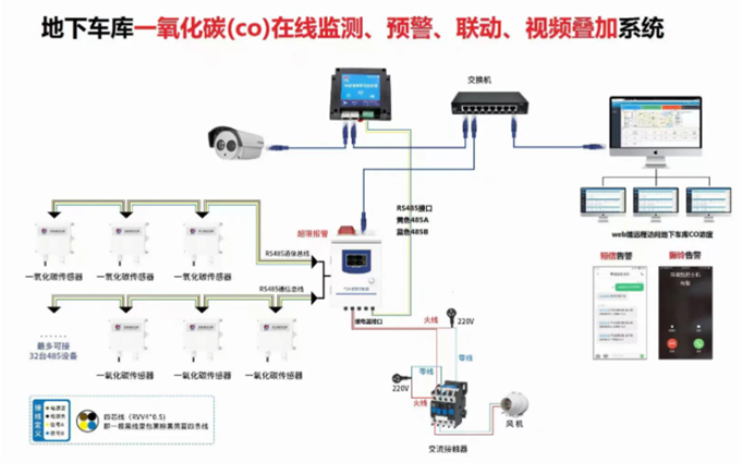 地下車庫一氧化碳的產生主要源自于汽車發動機,當發動機怠速運行時,由于汽油燃燒不充分,會產生含有大量CO的尾氣。地下停車場屬于密閉環境,車輛進出比較頻繁,所排放的尾氣也不易排出,極易積累大量CO氣體,導致停車場內彌漫著嗆鼻的氣味,損害人的身體健康。因此,地下車庫、停車場內應配有送、排風系統,用新鮮空氣進行置換。CO濃度探測器實時檢測和顯示地下車庫環境中的一氧化碳濃度值,并且將數據上傳到報警控制器集中顯示。