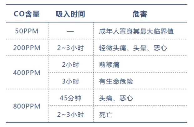 一氧化碳是無色無味,吸入對人體有十分大的傷害。它會結合血紅蛋白生成碳氧血紅蛋白導致人缺氧。最常見的一氧化碳中毒癥狀,如頭痛,惡心,嘔吐,頭量,疲勞和虛弱的毖覺,暴露在一氧化碳中可能嚴重損害心臟和中樞神經系統,會有后遺癥。