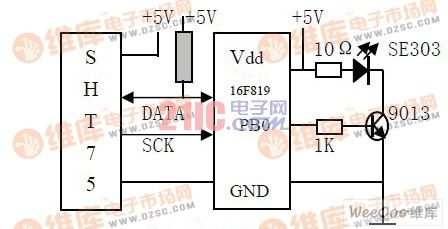 圖1中SHT75 是瑞士Sensirion公司推出的基于CMOSens技術的新型溫濕度傳感器。它是一種全新的基于智能設計理念的傳感器,該傳感器將溫度檢測、濕度檢 測、信號處理、數(shù)字變換、串行數(shù)字通信接口、數(shù)字校準全部集成到一個高集成度、體積很小的芯片當中,利用它可以同時測量目標對象的溫度和濕度,并實現(xiàn)數(shù)字式輸出。