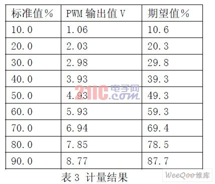 完成開發(fā)調試工作后,對產(chǎn)品進行了長時間的穩(wěn)定性測試,對存在的問題進行了改進。為了該變送器能更好地應用在實際項目中,還將其送到賽寶計量檢測中心進行計量。結果如表3 所示。、