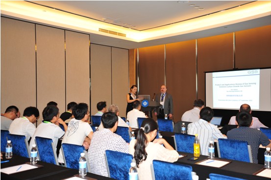 Des Gibson先生演講的主要內容包括GSS公司的革新技術及現有產品介紹、CO2傳感器的主要應用(樓宇控制—用于需求控制通風,園藝應用—加速植物生長,醫療CO2濃度檢測儀—測量病患呼出CO2濃度作為診斷依據,慢性呼吸道疾病治療等)、未來需要鞏固的產品方面等。Gibson先生強調當今市場多種應用(如樓宇控制、園藝和醫療)對CO2氣體傳感器的需求量持續攀升,SST公司因應這種需求,正以獲專利的固態CO2傳感器技術生產功耗極低、響應速度快、實時和準確的高性能CO2氣體傳感器。未來SST公司還將進一步研發CO、CH4和其他氣體傳感器的相關技術,敬請期待。