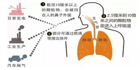 顆粒物對人體的危害:由于粉塵粒子表面附著各種有害物質,它一旦進入人體,就會引發各種呼吸道系統疾病;持續不斷的作用會導致慢性鼻咽炎、慢性氣管炎。滯留在細支氣管和肺泡的飄塵也會與二氧化氮等產生聯合作用,損傷肺泡和黏膜,引起支氣管和肺部炎癥。長期的持續作用,還會誘發慢性阻塞性肺部疾病并出現繼發感染,導致肺心病死亡率增高。大氣處于逆溫狀態時,污染物不易擴散,飄塵污染濃度會迅速上升,可見大氣中飄塵濃度的突然增加,對于人體健康有著極大的危害,對于患有心肺疾病的老人和兒童威脅更大。