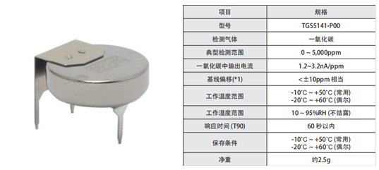 TGS5141是費加羅研發的可電池驅動的電化學式傳感器,使用一個特殊的電極取代了儲水器,由于去除了TGS5042中使用的儲水器,TGS5141與TGS5042相比,其外形尺寸縮減到只有后者的10%大小。壽命可達十年以上。非常合適用于家庭CO報警器。
